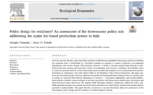 The paper by Giorgio Varanini and Peter H. Feindt titled “Policy Design for Resilience? An assessment of the bioeconomy policy mix addressing the maize bio-based
