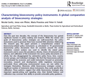 New Publication: “Characterizing bioeconomy policy instruments: A global comparative analysis of bioeconomy strategies” by Nicolai Goritz, Jonas von Pfister, Maria Proestou and Peter H. Feindt